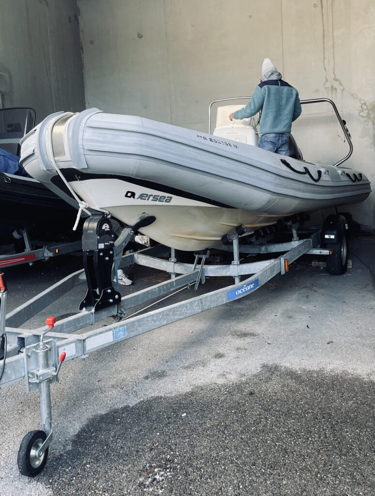 Il s’agit du tout premier bateau de notre école Bluecrab Kite – un semi-rigide Oversea mesurant 6 mètres de long, équipé d’un moteur Yamaha 115 cv. Sa taille idéale permet de transporter aisément tout le matériel requis vers les spots avec un maximum de 4 élèves.